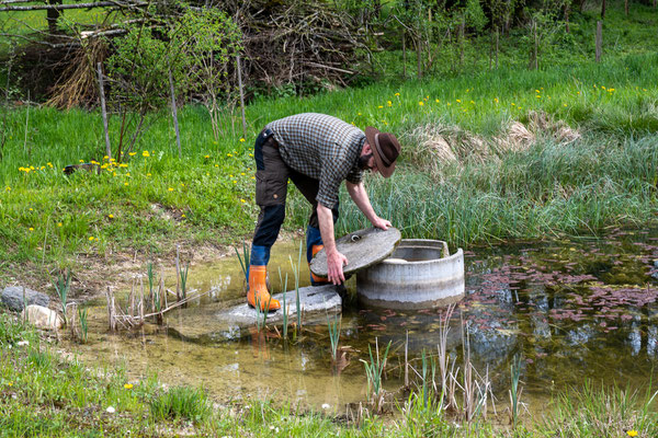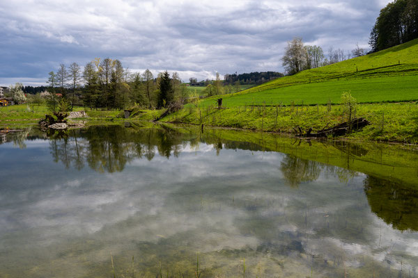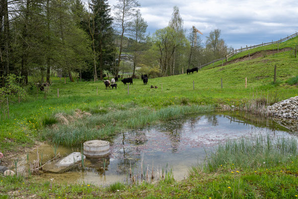 Ein Rundgang um den Teich – ein Privileg, da der Teich normalerweise nur am Westzipfel betreten werden darf – erschliesst viele Details des Baus und zeigt die erfreuliche Entwicklung der Pflanzen- und Tierwelt.