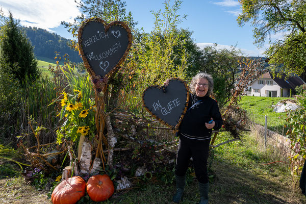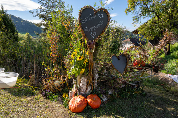 Schon der Empfang war vielversprechend: Ein schönes, von einer Floristin gestaltetes Arrangement mit einem herzliches Willkommen begrüsste einem am Eingang zum Teich.