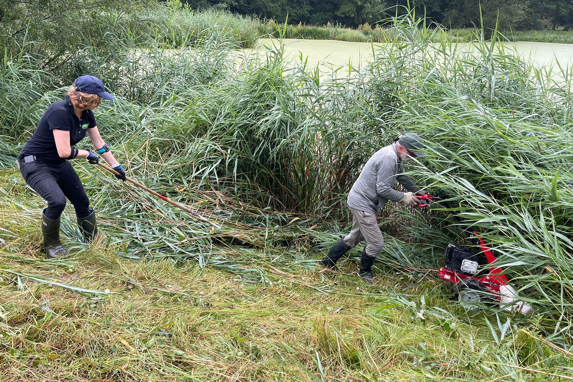 Wiederum machten wir uns mit Spechtschablone und Spray auf die Suche nach Biotopbäumen, welche besondere Nischen für Fledermäuse, Vögel und andere Tiere aufweisen. So erkennen die Forstleute innert Kürze, ob ein Baum Höhlen aufweist. Wenn möglich können sie diesen dann stehen lassen.